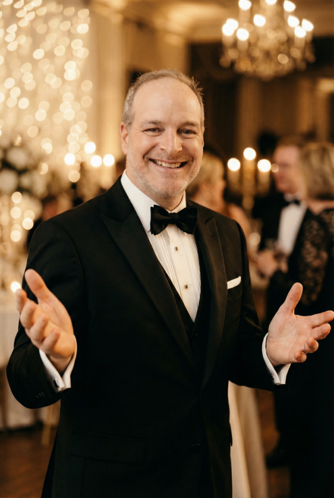 Vom ersten Titel beim Empfang über das Dinner bis hin zum letzten Song des Finales begleitet er jede Feier mit Feingefühl und Erfahrung. Ohne vorgefertigte Playlists, dafür live gemixt und mit einem außergewöhnlich breiten und tiefen Repertoire, passt er seine Musik in Echtzeit individuell an die Stimmung des Publikums an.
